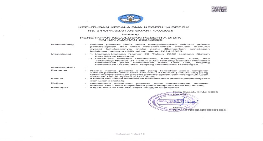 INFORMASI DAFTAR ULANG SPMB 2025 SMA NEGERI 14 DEPOK ATAU LEBIH JELAS NYA BISA KLIK LINK BERIKUT INI : >>Klik Disini<< UNDUH BERKAS SURAT PERNYATAAN ORANG TU